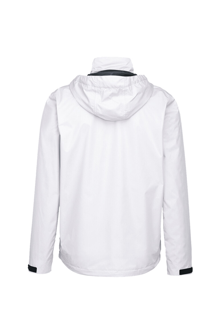 Leichte, funktionelle Regenjacke mit wasser- und winddichtem Obermaterial sowie getapten Nähten, klimaregulierendem Netz-Innenfutter, angenehm weichem Fleece an der Krageninnenseite, einer im Kragen integrierbaren und weitenverstellbaren Kapuze, verschließbarer Brustinnentasche, hochwertigem Frontreißverschluss mit doppelter Windschutzpatte und Seitentaschen mit Reißverschluss. Alle Reißverschlüsse von YKK®. Der Saumabschluss mit verlängertem, abgerundetem Rückenteil ist mit einem Tunnelkordelzug mit Stoppern in der Weite verstellbar, weitenverstellbare Ärmelbündchen mit Klettband zum stufenlosen Regulieren und Reflexapplikationen für verbesserte Sichtbarkeit. Hergestellt aus strapazierfähigem, wasser- und winddichtem, atmungsaktivem Obermaterial aus 2-Lagen-Laminat mit TRIACTIVE PRO Technologie für maximale und zuverlässige Wasserdichte. Gewebtes HAKRO Necklabel aus hochwertigem Kettsatin mit weichen, ultraschallgeschnittenen Bandkanten für höchsten Tragekomfort und gewebtes HAKRO Flaglabel an der linken Seitennaht.
