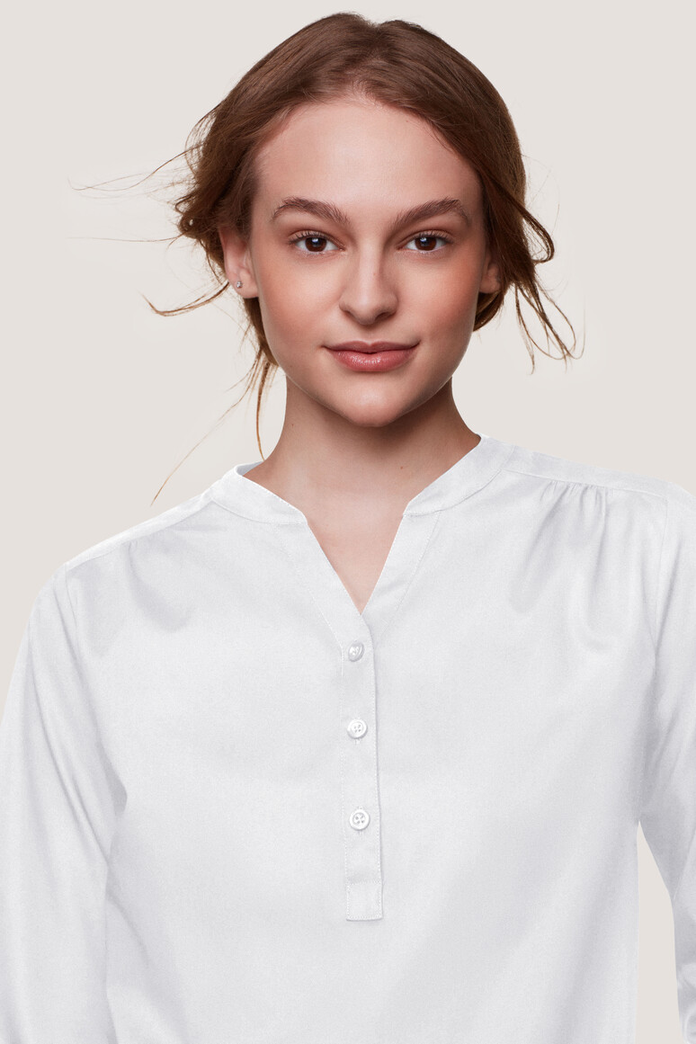 Hakro - Tunikabluse Stretch HK113 kombiniert schlichte Eleganz mit funktionaler Raffinesse – perfekt für Business-Outfits mit femininer Note. Der Regular Fit sorgt für eine fließende Silhouette, während das Stretch-Material aus 98 % Baumwolle und 2 % Elasthan angenehme Bewegungsfreiheit garantiert. Dank verlängertem Schnitt und seitlichen Schlitzen lässt sich die Bluse sowohl mit schmaler Hose als auch mit Rock vielseitig stylen.